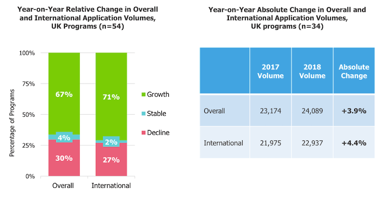 The UK’s popularity has also likely been sustained by a falling pound—making UK MBA and master’s programs cheaper—and reduced interest in the United States, which has seen international applications suffer—a trend commentators blame both on visa issues and the anti-immigration policies of Donald Trump.