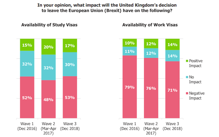 However, the continued uncertainty around Brexit is taking its toll. One in two non-UK Europeans said they were less likely to study in the UK because of Brexit.